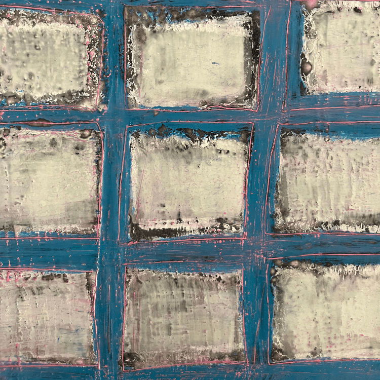 Abstract expressionism with design elements of minimalism like monochromatic color choices and geometric form and line work; I use such design elements to anchor my work and provide footing to my emotional journey.