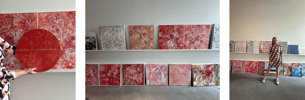 I achieve this state through the construction of many layers of various materials in a lengthy process. I create abstract pieces and work in various media, but often embrace mixed media.